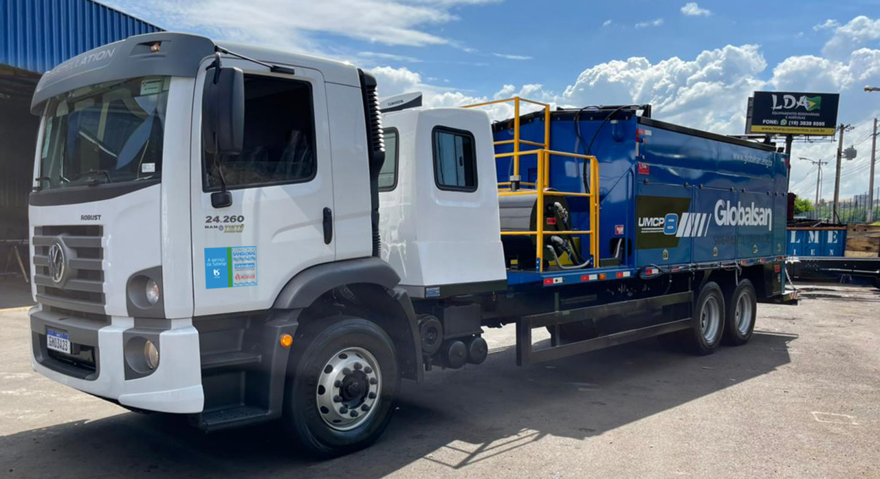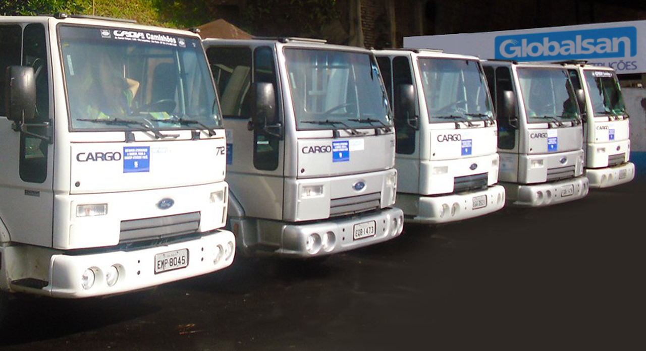 próximo de 90%, servem também de indicadores da competência da equipe de trabalho da Globalsan. E mostram, por outro lado, a atenção que a empresa dedica aos seus colaboradores. Afinal, uma empresa com mais de 40 anos de atuação no mercado, adquire a experiência suficiente para conhecer o valor de seus colaboradores, como também, adquire a segurança necessária de poder contar com sua equipe. Hoje, são cerca de 350 empregos diretos. Sendo 10 no gerenciamento administrativo, e, em torno de 100 empregos indiretos, de empresas terceirizadas ou cooperadas. Treinamento, liderança, meritocracia e fluxo constante de informações permitem agilizar os processos de tomada de decisão, e fazem parte do dia a dia da política de pessoal da Globalsan. A Globalsan está sempre renovando e aumentando sua frota de veículos e equipamentos para um atendimento com mais qualidade e produtividade.